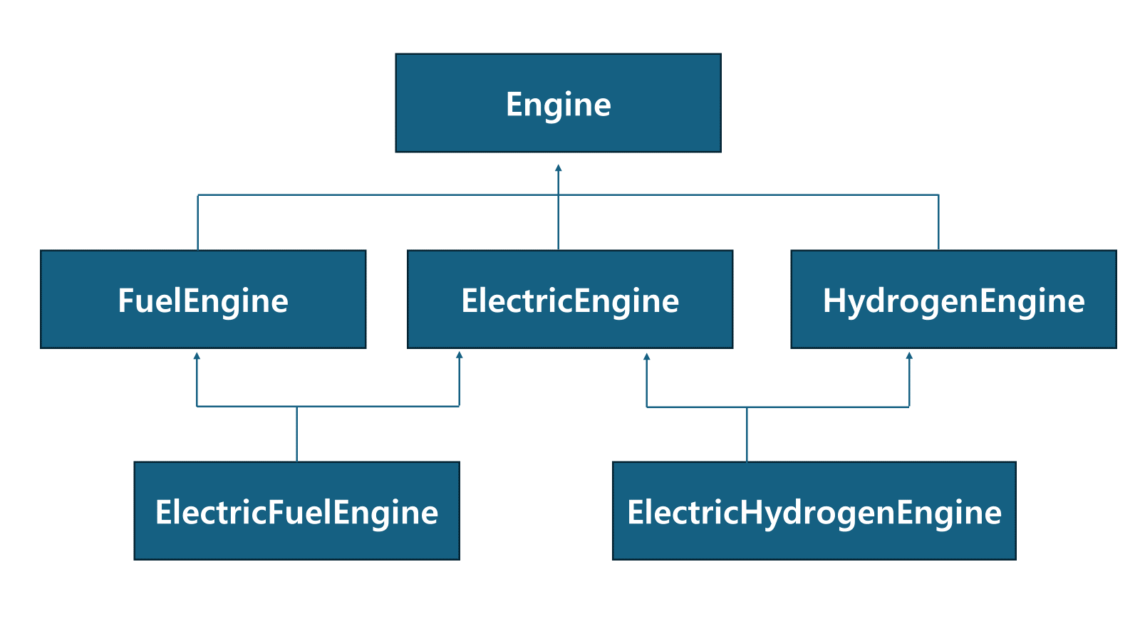 앞의 Engine 예시로 다시 돌아와보자. 만약에 FuelEngine과 ElectricEngine이 있고 이를 표현하기 위해 ElectricEngine과 FuelEngine을 상속 받은 클래스가 생겼다고 해보자. 그리고 이제 HydrogenEngine이 있어서 그걸 조합한 ElectricEngine과 조합한 클래스가 있다고 해보자. 이렇게 상속으로 기능 재사용을 하려고 들면 계층도가 복잡해지고 클래스 수가 기능이 늘어남에 따라 무한정 늘어나게 된다. 이는 잘못된 설계이다. 따라서 상속을 통한 재사용이 항상 좋은 것이 아님을 인지해야 한다.