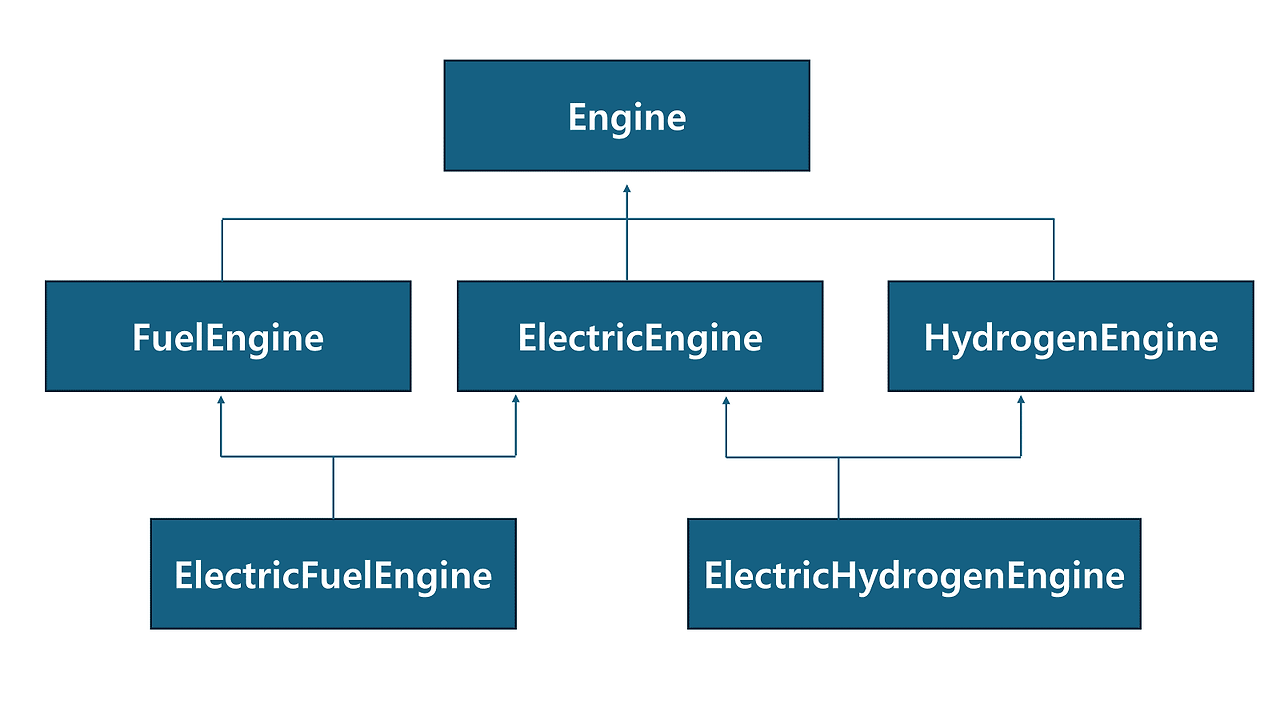 과거의 글에서 짧게 나마 아래의 이미지와 함께 자바에서의 다중 상속에 관한 이야기를 했었다. 해당 내용을 요약하면, 기능의 추가를 위해 다중상속을 하는 것은 상위 클래스의 수정을 어렵게 만들며, 기능의 조합에 따라 수많은 클래스를 생성해야 하는 문제를 일으켰다. 따라서 재사용성이 떨어진다는 이야기를 했었다.